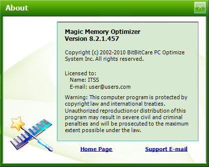 Magic Memory Optimizer предназначена для решения трудных и критических проблем возникающих в оперативной памяти компьютера. Память - самый драгоценный ресурс на вашем компьютере; если ее становится недостаточно, ваш компьютер начинает медленно работать, "зависать" или наступает крах, - падение системы. Сама же Windows не управляет памятью на должном уровне. Со временем, не имеет значения какой объем памяти у вас имеется, Windows постепенно для своей работы и прикладных программ отбирает остатки свободной памяти, что легко может привести вашу систему к краху. Программа решит все эти проблемы, высвобождая и восстанавливая беспечно растраченную системой память для ваших программ.