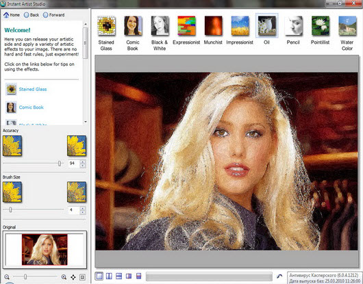 - Instant Artist Studio. Преобразуйте фотографии в уникальные шедевры, применяя красивые художественные эффекты. Просматривайте фотографии, как акварель, масло, витражи и рисунки или воссоздайте популярные стили, включая Munchist, экспрессионизма и импрессионизма.