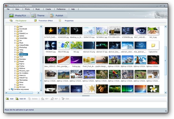 Photo Flash Maker Platinum - программа для создания анимированного FLASH-слайдшоу из обычных цифровых фотографий. Данная утилита предоставляет более 200 эффектов перехода одной фотографии в другую, имеет различные темы внешнего оформления и позволяет устанавливать музыкальное сопровождение. В настройках утилиты можно указать продолжительность показа отдельной фотографии и время ее перехода в другое изображение.