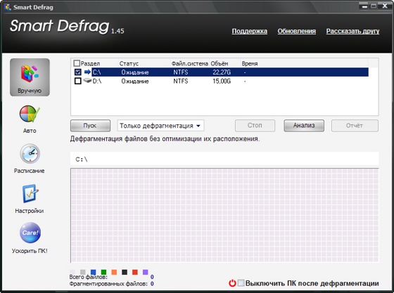 Кроме всего прочего программа IObit SmartDefrag не только дефрагментирует файлы, но и оптимизирует, упорядочивает их расположение относительно друг друга для более быстрого чтения.