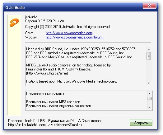 Скачать программу JetAudio 8.0.5.320 Plus VX (19,37 МБ):