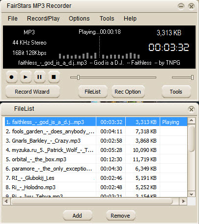 FairStars MP3 Recorder – программа записи аудио в режиме реального времени, предоставляет профессиональные функции записи с полной поддержкой MP3, OGG, APE и WAV форматов. Данная программа позволяет вам записывать звук прямо с вашей звуковой карты, включая запись с микрофона или с линейного входа, запись производится на высоком качестве. Данная программа может использоваться для захвата звука, включая музыку, диалоги с фильмов, игровые звуки, потоковое аудио и все что угодно. Захваченный звук может быт сохранен напрямую в MP3, OGG, APE или WAV формат, без нужды во временных файлах. В дополнение, данная программа включает ID3 тег редактор. К дополнительным функциям относится пропуск тишины (программа обнаружения тишины), ограничения по размеру файла и многое другое.