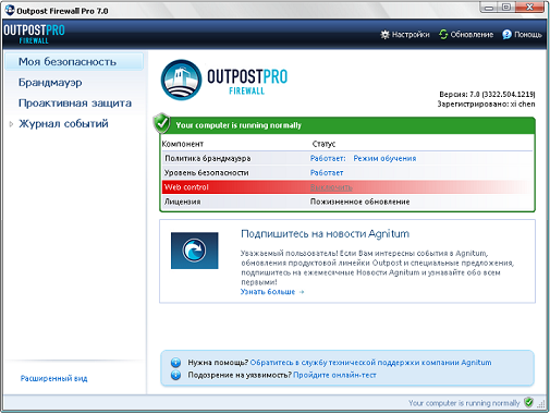 Скачать программу Outpost Firewall Pro 7.0 (3322.504.1219.395) Beta x86 (31,4 МБ):