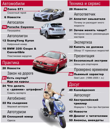 Еженедельное издание, полностью посвященное миру автомобилей. В издании представлено максимум информации о автомобилях и не только. Основные рубрики журнала: Автосалон, Автополигон, Концепции, Авторынок, Автобизнес, События и выставки, Практические технические и юридические советы, Спорт и другое.