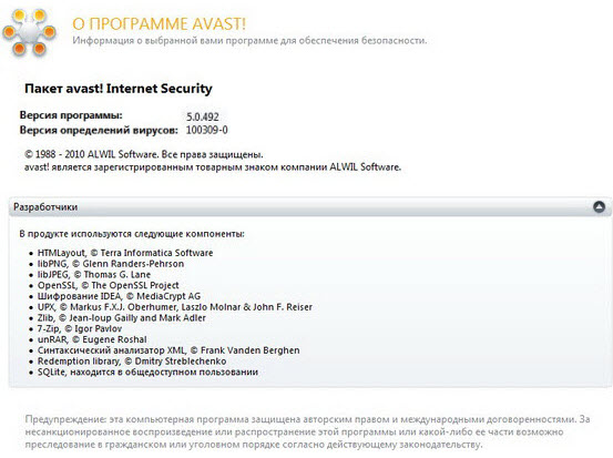 Скачать программу Avast! Internet Security 5.0.492 (49,15 МБ):