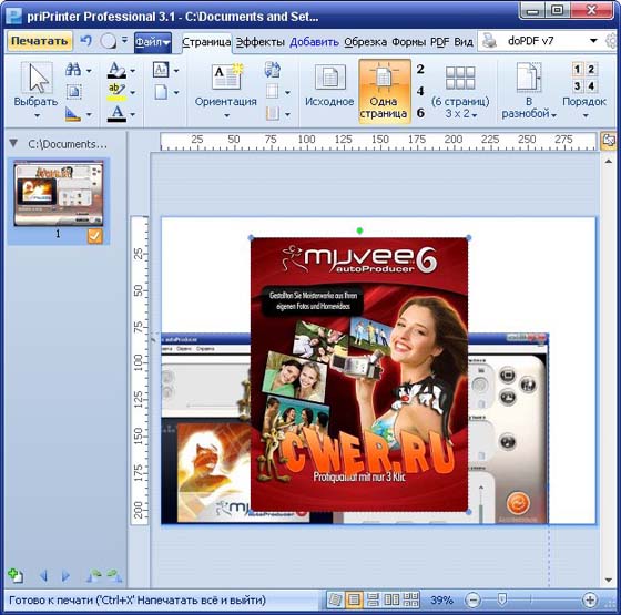 Priprinter – это драйвер для принтера, который позволяет вам управлять документом и редактировать его перед печатью на принтере. Данный инструмент устанавливается так же, как и обычные драйверы для принтеров и может использоваться в качестве принтера по-умолчанию. После отправки на печать выбранного документа, программа автоматически запустит окно для редактирования документа, который должен быть распчатан. В этом окне вам позволяется настроить вид страницы, добавить некоторые эффекты к виду документа, сделать обрезку документа и многое другое. Кроме того, интерфейс программы переведен на несколько языков, в том числе на русский язык.