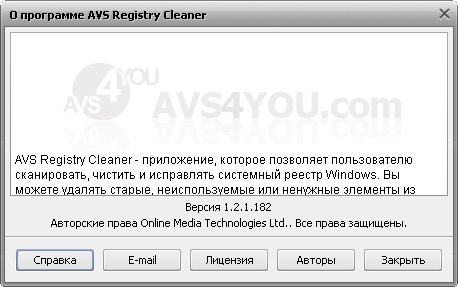 Скачать программу AVS Registry Cleaner v1.2.1.182 (15,22 МБ):