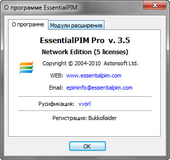 Скачать программу EssentialPIM Pro 3.5 Network Edition (14,19 МБ):
