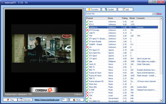 Internet TV – программа для просмотра телевидения на ПК. Она бесплатно обеспечивает доступ к более чем 5,000 каналов, транслируемых через Интернет. Среди такого числа телепрограмм обязательно найдутся передачи на любой вкус: от новостей до спорта, от музыки до документальных фильмов, от религии до образования. Так же возможна опция добавления собственных каналов. Есть сортировка по битрейту. Предусмотрена опция обновления списка каналов.
