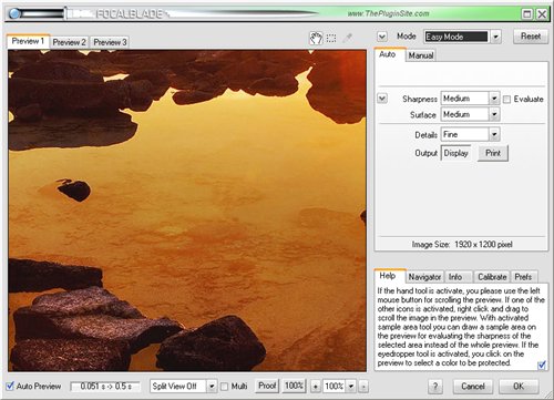 Режим новичка, как и следовало ожидать, наиболее простой в применении. Вы указываете конечную цель преобразования – монитор или печатающее устройство. После этого необходимо определиться с тремя опциями. Каждая из них определяется серией сюжетных значений. Первая опция заключается в указании степени повышения резкости фото. Вторая отвечает за сложность текстур. Например, пейзаж, состоящий из множества листвы и веточек, имеет значительно более сложные текстуры, чем, например, студийный портрет на однородном фоне. Третий параметр определяет размер деталей. Например, на ростовых портретах детали значительно мельче, чем на крупных планах. Указанием трех опций применения фильтра и завершается работа с плагинов в режиме новичка.