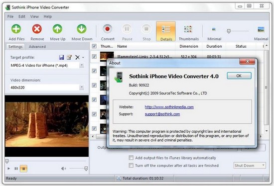 Скачать программу Sothink iPhone Video Converter 4.0 build 90922 (17,63 МБ):