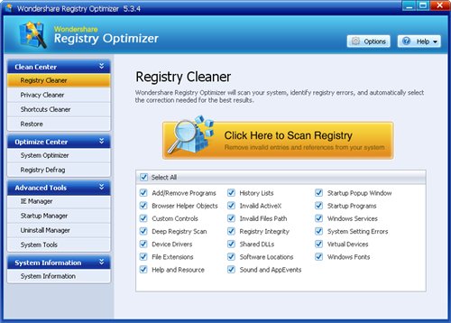 Wondershare Registry Optimizer - программа которая поможет вам в чистке и восстановлении системного реестра Windows. В процессе работы программа сканирует реестр и удаляет некорректные или устаревшие записи, тем самым, ускоряя работу Windows и избавляя её от разного рода ошибок. Среди дополнительных возможностей можно отметить: дефрагментацию реестра, создание списка ошибок, которые программа должна игнорировать, менеджер автозагрузки, деинсталляция приложений.