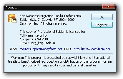 Скачать программу ESF Database Migration Toolkit Pro 6.3.17 (31,21 МБ):
