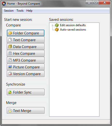 Beyond Compare - программа для сравнения файлов и папок. С ее помощью можно синхронизировать архивы, сайты FTP, обновлять веб-сайты, управлять исходным кодом, находить отличия между двумя текстовыми файлами и многое другое. Beyond Compare может сохранять образцы структуры выбранных папок и в заданное время сравнивать их с теми копиями, которые находятся на диске. Программа поддерживает большое количество операций с файлами и папками, в том числе скрипты для автоматизации заданий. Кроме этого в состав Beyond Compare входят просмотрщики для большого количества типов файлов.