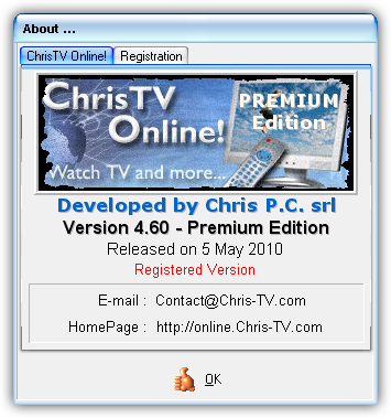 ChrisTV Online! Premium — позволяет просматривать и записывать огромное количество ТВ-каналов, радиостанций и другого аудио-видео материала, транслируемого через сеть интернет. Для всего этот используется только соединение с интернетом, и не нужно никакого дополнительного оборудования. В базе ChrisTV Online! Premium имеется более 1800+ телевизионных каналов и более 600 радиостанций из 100 стран мира. Выбор каналов можно производить по стране, типу, категории, языку, названию станции. У Вас также есть возможность добавить Ваши собственные радио/каналы база данных каналов.