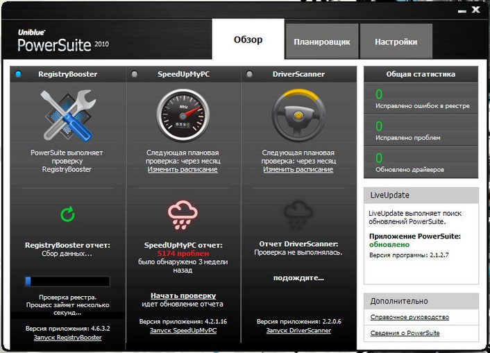 Попробывал 2 программы Uniblue PowerSuite 2010 Build 2.1.2.7 и Uniblue DriverScanner 2010 v2.2.0.6 от одного