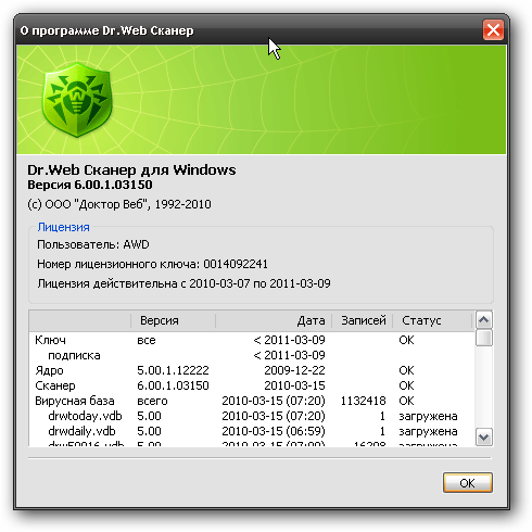 Скачать программу Dr.Web Anti-Virus 6.00.1.03150 (40,9 МБ):