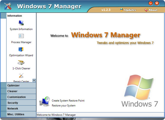 - Information. Get detailed system and all hardware information on your system; show all detailed information of running processes and threads on your machine; Windows 7 Manager offers 1-clicking cleans your system automatically.