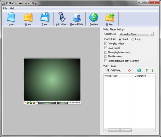 Теперь вы можете конвертировать свои фильмы во Flash и размещать их на веб-сайтах. CoffeeCup Web Video Player конвертирует MPG, AVI, MOV, FLV и WMV во Flash быстро и просто. Просто выберите ваше видео и подберите скин плеера и все готово для загрузки ваших фильмов, клипов или любимого видео на ваш веб-сайт. С CoffeeCup Web Video Player добавление одного или нескольких фильмов на ваш веб-сайт проще простого!
