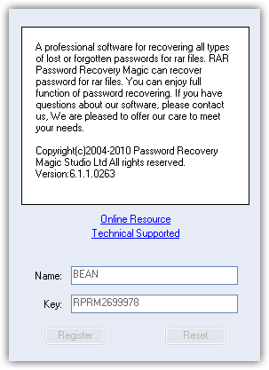 Скачать программу RAR Password Recovery Magic 6.1.1.263 (1,80 МБ):