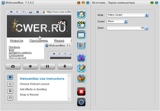 Скачать программу WebcamMax 7.1.5.2 (24,93 МБ):