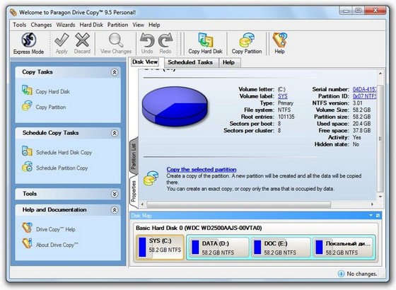 Paragon Drive Copy - позволит легко и быстро создать копию жесткого диска или его отдельных разделов, а так же переместить данные со старого жесткого диска на новый. Благодаря технологии Hot Copy™ все работающие приложения будут доступны во время перемещения данных.