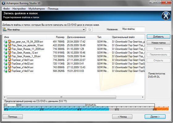 Построение меню DVD – сложная и трудная работа. В Ashampoo Burning Studio 10 вы выбираете стиль меню ( возможно анимационное или статичное, предпросмотр), а программа делает всю работу, автоматически создавая меню и навигационные элементы. Вы также можете записать стандартные DVD файлы (папки VIDEO_TS, содержащие файлы .VOB, .IFO и .BUP), например, для резервирования уже существующих DVD или для записи DVD файлов, созданных с помощью различных авторских программ.