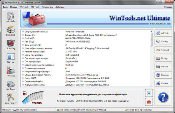 WinTools.net Ultimate – набор инструментов для оптимизации операционной системы Windows. В состав программы входят компоненты для полного удаления нежелательных программ и «мертвых» ссылок реестра, а также для контроля процессов, настройки системы, интернет-соединений и интерфейса. Кроме того, имеются утилиты для надежного хранения конфиденциальной информации.