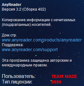 Часто необходимо считать данные с поврежденных "флешэк", дискет, поцарапанных DVD/CD-дисков, ненадежных сетей LAN (Wi-Fi). Обычными средствами это будет сделать, скорее всего, невозможно. Для таких случаев и существует программа AnyReader, которая выручит вас в подобной ситуации и легко прочитает, казалось бы, уже потерянную ценную информацию с любых носителей, которые доступны как буква диска в операционной системе Windows. Продолжение чтения (копирования) данных после возникающих ошибок или потери соединения в сети является уникальной возможностью программы AnyReader.