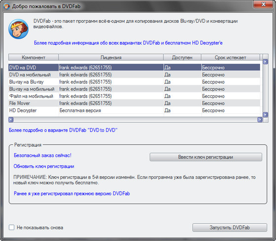 DVDFab – мощный, многофункциональный программный продукт для копирования DVD дисков с возможностями гибкой обработки видеопотока. Программа является одной из лучших на сегодняшний день, из инструментов для копирования, разбиения, пережатия и конвертирования DVD дисков с фильмами. Снимает все защиты и ограничения с диска и при желании пережмет диск большой емкости и вместит его в обыкновенную пустую DVD болванку с минимальными потерями качества (DVD9->DVD5) или разобъет фильм на два диска с полным переносом его меню, удалит всю рекламу, запишет только фильм и многое другое. Программа имеет интуитивно понятный, мультиязычный интерфейс включая русский.