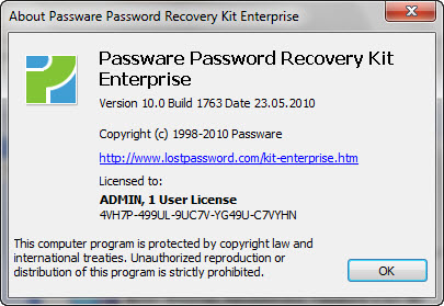 Passware Kit - набор инструментов для подбора или определения паролей к файлам (более 100 видов), созданными самыми известными в мире программами: Office, Excel, Word, Windows XP/2000/NT, Access, Outlook, Outlook Express, Exchange, WinZip PKZip ZIP, WinRAR RAR, VBA Visual Basic modules, Internet Explorer/ EFS - Encrypted File System, FileMaker/ Acrobat, Quicken, QuickBooks, Lotus 1-2-3, Lotus Notes, Lotus, Organizer, Lotus WordPro, Quattro Pro, Backup, Project, MYOB, Peachtree, Paradox, ACT!, Mail, Schedule+, Money, WordPerfect и MS Office 2007, а также определения ключа Windows XP/2000/NT/7.
