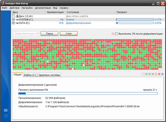 Disk Defrag может ускорить работу Вашего компьютера за счет переноса системных файлов в более быструю часть диска, а также благодаря очистке резервной зоны MFT от обычных файлов.