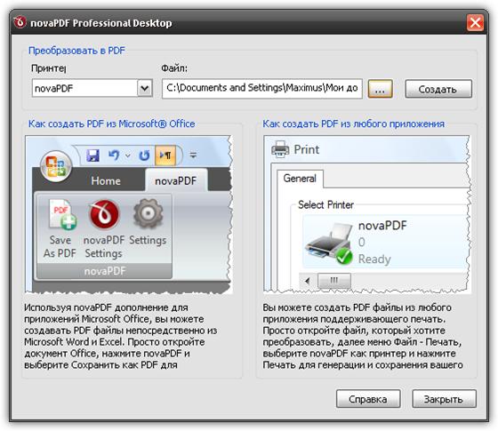 novaPDF - программа для создания файлов в формате PDF из других файлов с данными. Благодаря существующим настройкам вы сможете устанавливать разрешение изображений, соответствующую информацию, степень компрессии, безопасность, профайлы и другие параметры. Поддерживается работа с файлами в форматах DOC, XLS, PPT, HTML, EML, TXT и многими другими, имеется возможность установить пароль на создаваемый файл, присутствует опция изменения размеров страниц и разрешения изображений. Поддерживается работы со шрифтами TrueType и OpenType, поддерживаются методы компрессии ZIP и JPEG и т.д.