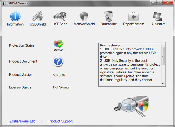- USB Disk Security - лучшая антивирусная программа для постоянной защиты компьютера от угрозы заражения от USB носителей, без надобности в обновлениях сигнатур, отлично работающая с вашим основным антивирусом.