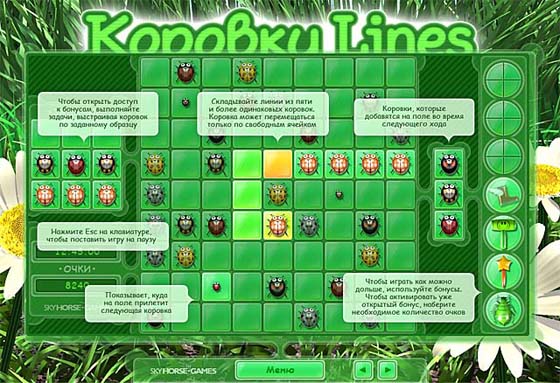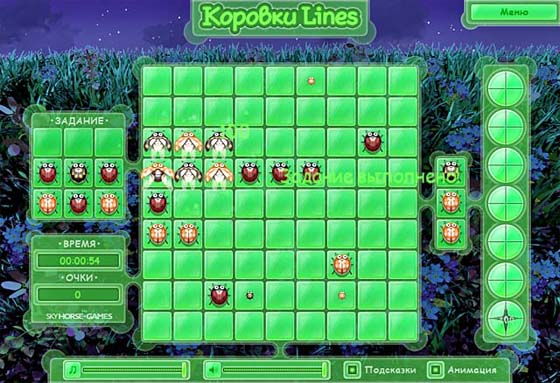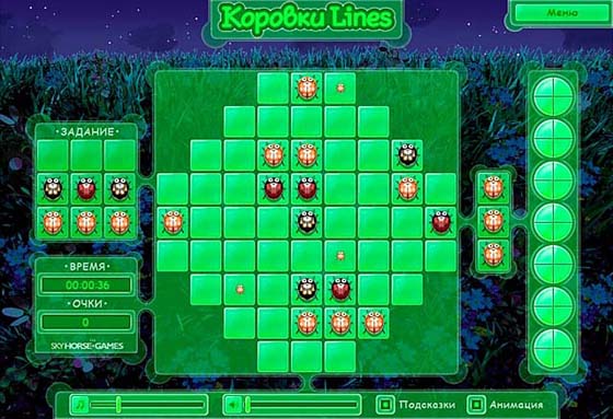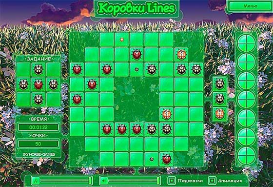 Есть игры, которые не устаревают никогда. Игра Lines – лучшее тому подтверждение. В «шарики» на просторах нашей страны играли и играют все – от директоров компаний до простых секретарей. «Коровки Lines» – это те же «шарики», только в сотню раз красивее и разнообразнее своего прародителя. Ведь смотреть на то, как уморительно ползают по игровому полю забавные разноцветные божьи коровки, куда веселее, чем наблюдать за простыми кружочками! А кроме того, развлекаясь, можно тренировать логическое мышление.