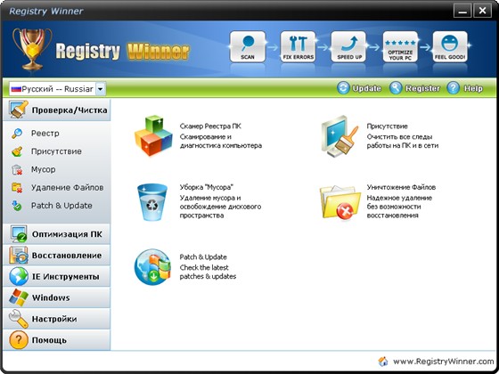 Registry Winner - программа для очистки системного реестра, которая позволяет находить и исправлять ошибки, повышая производительность системы. После обнаружения проблем, программа предоставит вам профессиональное и высоко-эффективное решение для восстановления работоспособности вашего компьютера. При постоянном обслуживании системы с помощью этой утилиты вы будете иметь упорядоченный системный реестр и система соответственно будет работать более стабильно.
