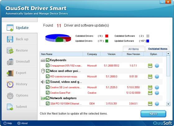 QuuSoft Driver Smart - является эффективной утилитой для автоматического обновления, резервного копирования и/или восстановления драйверов для персональных компьютеров Windows. Программа также может проанализировать и исправить возникшие проблеммы с драйверами.