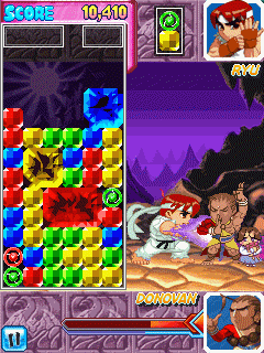 Нечто вроде тетриса для двух игроков, с восьмеркой милых (нарисованных в chibi стиле) персонажей из различных файтингов. В "стакан" падают пары разноцветных кристаллов, которые нужно укладывать быстрее и лучше, чем это делает соперник, а затем разбивать соприкасающееся кристаллы одного цвета соответствующей сферой. Если выстроить из одинаковых кристаллов прямоугольник, они сольются в один большой кристалл, за взрыв которого в стакан противника падают серые кирпичи, мешающие взрывать кристаллы. Особенно удачные комбинации сопровождаются забавной анимацией двух соревнующихся в данный момент персонажей. Размеры экранов: 176x208, 240x320, 360x640.