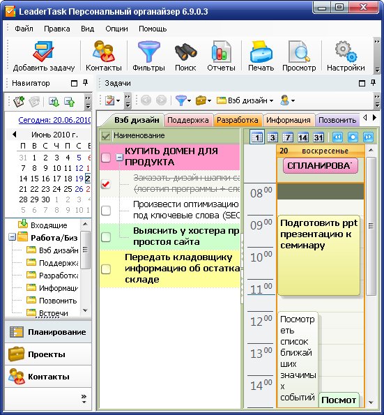- Ежедневник. LeaderTask - органайзер для планирования повседневных задач, используйте его в роли ежедневника для управления задачами.