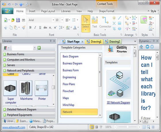 Edraw Max - многофункциональная программа для рисования диаграмм, графиков, бизнес планов и т.д. Программа обладает функциями, которые делают её идеальным решением не только для профессионально-выглядящих блок-схем, организационных схем, сетевых диаграмм и бизнес карт, но также и для построения планов, UML диаграмм, трудового процесса, структур программ, сетевых диаграмм, чартов и графики, указательных карт и диаграмм баз данных.