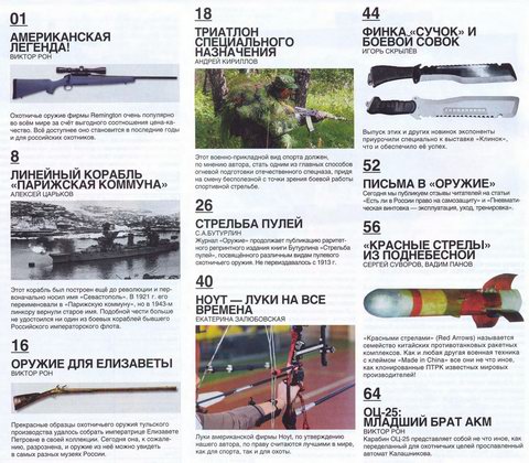 Издание адресовано широкому кругу читателей, интересующихся стрелковым, охотничьим и холодным оружием. В каждом номере - достоверная и авторитетная информация о разработках, выпускаемых образцах, производителях и конструкторах оружия. Основное внимание уделено современным отечественным и зарубежным моделям, эволюции видов и образцов стрелкового оружия. Ряд страниц журнала посвящен оружию и специальным средствам правоохранительных органов.