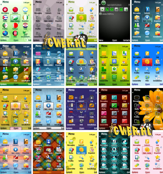 Темы для смартфонов Nokia под управлением Symbian OS 9.1, 9.2, 9.3: Nokia 3250, 5500 Sport, 5700, 6110 Navigator, 6120 c, 6121, 6220 classic, 6290, E50, E51, E60, E61, E61i, E62, E65, E70, E90, N71, N73, N75, N76, N77, N78, N79, N80, N81, N81 8GB, N82, N91, N92, N93, N93i, N95, N95 8GB и др. cwer.ws