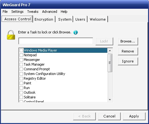 WinGuard позволяет заблокировать доступ к программам, окнам, файлам и папкам. Кроме этого, с её помощью можно установить защиту практически на каждый элемент операционной системы, в том числе на рабочий стол и папку Мой Компьютер, закрыть доступ в Интернет, запретить установку/удаление ПО и запуск консоли, заблокировать Панель управления, Internet Explorer или полностью компьютер. Поддерживается многопользовательское использование с индивидуальными настройками для каждого пользователя.