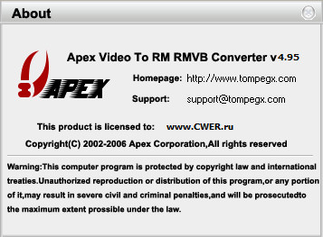 Скачать программу Apex Video To RM RMVB Converter 4.95 (7,52 МБ):