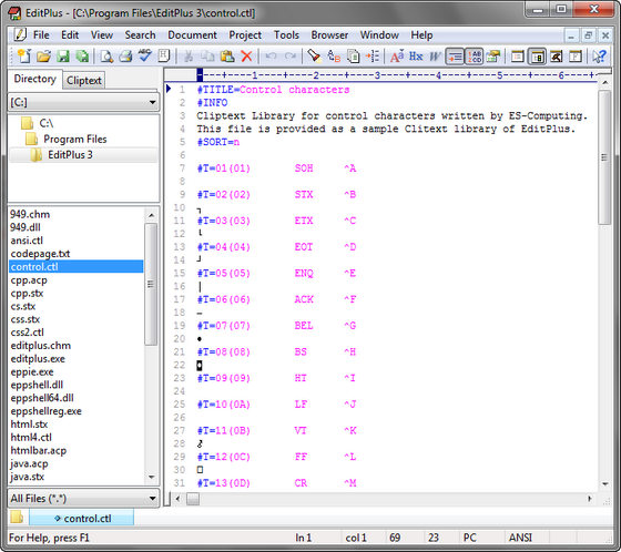 EditPlus - текстовый редактор, редактор веб-страниц и редактор программиста для Windows, ориентированный на интернет. Редактор может служить отличной заменой стандартному блокноту Windows, и, в то же самое время, имеет множество мощных и удобных возможностей для создателей веб-страниц, переводчиков программ, программистов и прочего населения земного шара. Основные возможности редактора включают в себя подсветку синтаксиса для различных типов файлов, панель инструментов HTML, пользовательские панели инструментов, номера строк, линейку, подсветку адресов интернета и электронной почты, авто-завершение, встроенные текстовые клипы, выделение столбцов, мощные поиск и замена, в том числе поиск определённой фразы в группе файлов, множественная отмена и восстановление, модуль проверки орфографии, настраиваемые горячие клавиши и многое другое. Этот редактор предназначен скорее для программистов, чем для обычных верстальщиком HTML страниц.