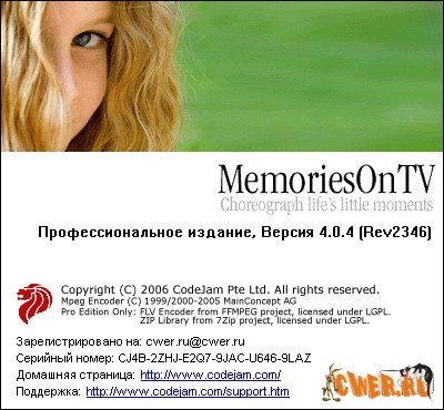 Обновленная версия MemoriesOnTV Pro 4.0.4.2346 + Clipshow Package Volume v1.1 + Ваши фотографии (формат любой кроме PSD) и/или видеоклипы (mpg, avi, mov, mp4) - это всё, что нужно для создания/записи собственного качественного DVD, VCD или sVCD с потрясающими голливудскими переходными эффектами, музыкальным сопровождением и возможностью просмотра на стандартных DVD, VCD плеерах или на компьютере. Русификатор присутствует.