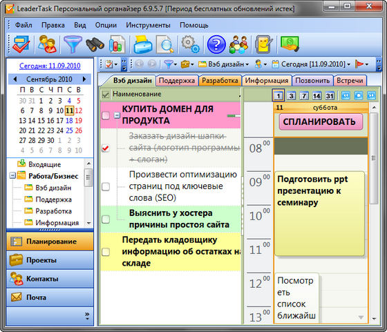 - Составление плана работы на день. LeaderTask поможет создать почасовое расписание задача на день.