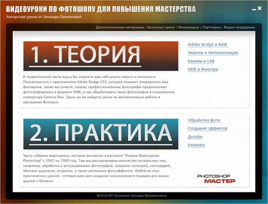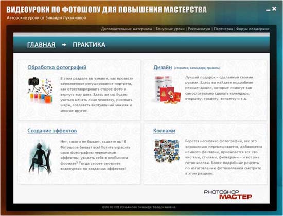 Практика - этот блок будет полностью посвящен урокам, которые помогут вам достичь какой-то определенной творческой цели, например, создать открытку или календарь своими руками. Эти уроки окажутся максимально полезными для тех, кому не хватает практических навыков в работе с фотошопом.