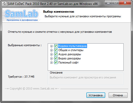 Скачать набор кодеков SAM CoDeC Pack 2010 v2.40 x86 (10,13 МБ):