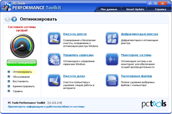 PC Tools Performance Toolkit включает комплекс средств для оптимизации работы Windows 7, Windows Vista и Windows XP.